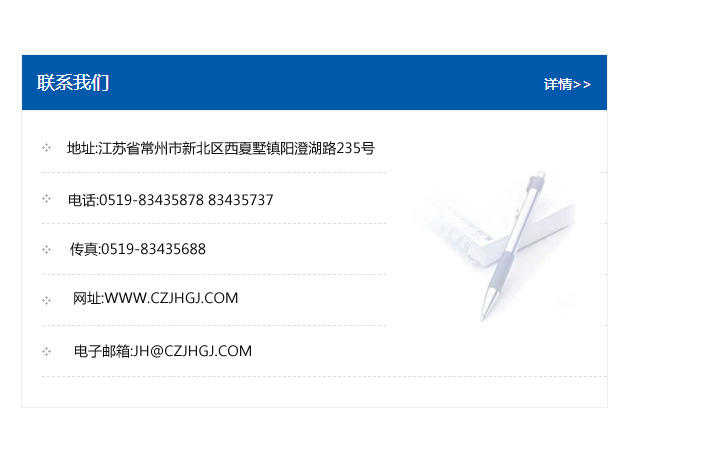 地址:常州市新北區友邦商務大廈1幢16、17層  電話:0519-85101652  傳真:0519-85112595  郵編:213022  網址:www_cz-jiayue_cn.lfsfz.com  郵箱:xiajifengaa@163.com